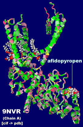 殺虫剤アフィドピロペン(afidopyropen)が結合した昆虫TRPVチャネル9nvrのChain AとそのPDBsumデータ