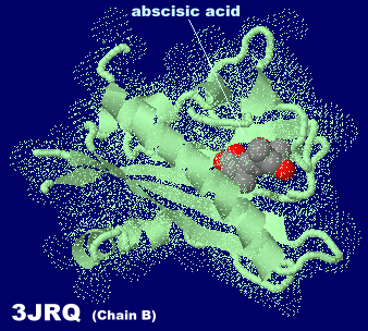 左から アブシジン酸受容体PYL1とプロテインホスファターゼ2Cの複合体3jrq,