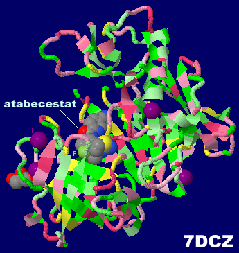 阻害剤アタベセスタット(atabecestat)が結合したβ-セクレターゼ1(BACE1) 7dczとそのPDBsmデータ