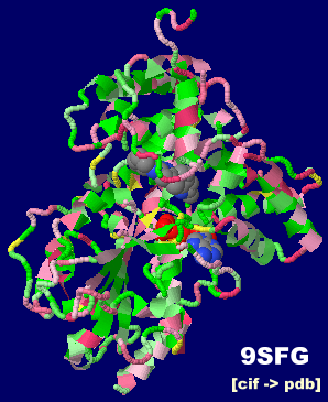 [左・中]ハチ毒のヒアルロニダーゼ1fcvとそのPDBsumデータ → Structure誌論文(2000/10/01)