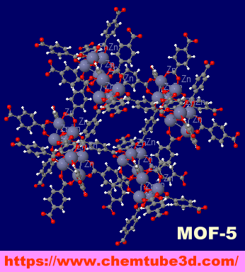 [中・右]MOF構造例(MOF-5;Interactive 3D Chemistry Animations — ChemTube3D掲載データ例)