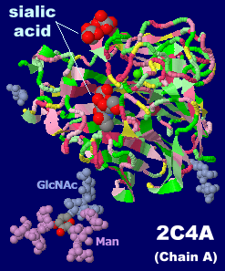 シアル酸が結合したA型インフルエンザウイルス(N9)のノイラミニダーゼ2c4aのChain AとPDBsumデータ