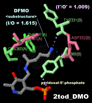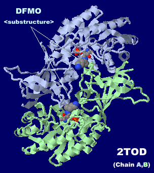 左から DFMO(部分構造)が結合したオルニチンデカルボキシラーゼ2todのChain A・BとPDBsumデータ,