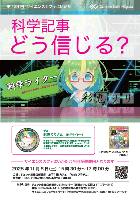 概要: 科学ライターの彩恵りりさんは幅広い分野の科学記事を日々発信されてます。またVtuberとしても活躍しており,広範な活動の秘密をお話しいただきます。