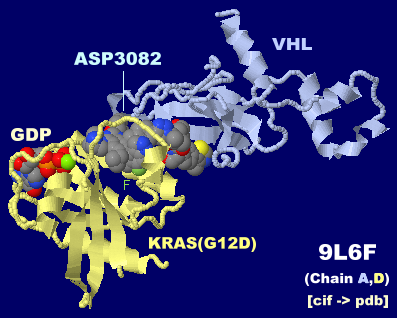 KRas選択的分解薬ASP3082が結合したKRAS(G12D)-VHL複合体 9l6fのChain A・DとPDBsumデータ
